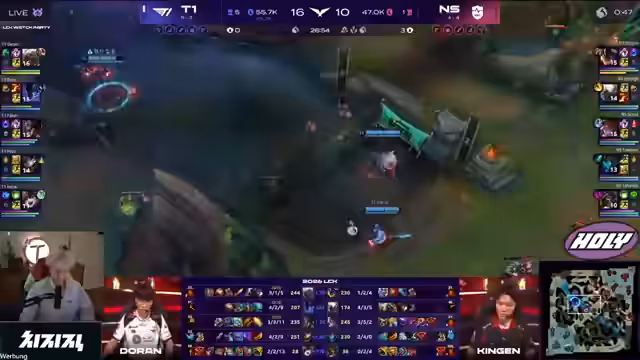 03:22:22Ein zentrales Thema des Streams sind die intensiven Kämpfe um wichtige Objektive wie Herald und Drake. Der Streamer hebt strategische Entscheidungen hervor, wie etwa die Priorität von Map-Kontrolle und die Risiken von bestimmten Engagements. Dabei wird insbesondere die Performance von Spielern wie Zeus und Guma analysiert, die durch gezielte Plays versuchen, das Spiel für ihr Team zu entscheiden. Auch die Bedeutung von Fehlern und deren Konsequenzen wird betont.