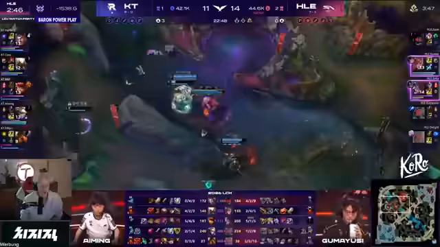 02:29:22Die Kommentierung konzentriert sich auf aktuelle Spielzüge, darunter den Kill von Akhil auf der Seraphine gegen Ezreal und die starke Leistung von Yorick im Spiel. Es werden technische Aspekte wie Werbungsdelay angesprochen, der sich auf den Ablauf auswirkt. Des Weiteren werden die LCK-Preisgelder thematisiert, die kaum noch existent sind. Es folgen Analysen zu Champion-Matchups, insbesondere zwischen Yorick und Jace, wobei der schwierige Charakter dieses Duells betont wird.