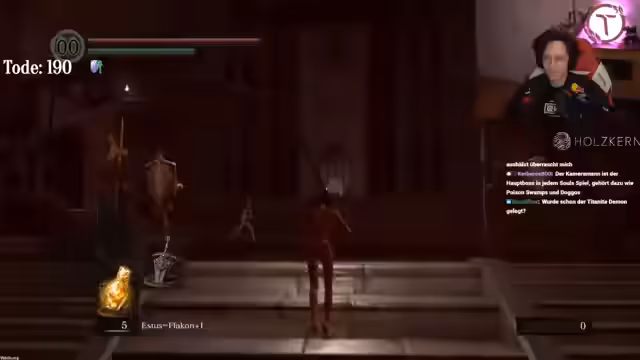07:48:28Der Streamer nutzt Menschlichkeit, um seine menschliche Gestalt wiederzuerlangen, in der Hoffnung, dadurch stärker zu werden und den Boss leichter besiegen zu können. Er stellt jedoch fest, dass die Vorteile der menschlichen Gestalt nicht so groß sind wie erwartet und dass er nach jedem Tod seine Menschlichkeit wieder verliert. Trotzdem versucht er, die zusätzlichen Resistenzen und die erhöhte Anzahl an Estus-Flakons zu nutzen, um im Kampf gegen die Bosse zu bestehen. Er experimentiert weiterhin mit verschiedenen Taktiken, darunter das Bodyblocken der Bosse mit Säulen, das Ausnutzen ihrer Stagger-Animationen und das Fokussieren auf einen Boss nach dem anderen. Der Streamer erkennt, dass er den Henker zuerst besiegen sollte, da dieser leichter zu treffen ist und weniger Schaden verursacht. Er versucht, den Henker von links nach rechts zu umkreisen, um den Drachentöter auf der linken Seite zu halten und so seine eigenen Bewegungen nicht einzuschränken. Trotz aller Bemühungen gelingt es ihm jedoch nicht, die Bosse zu besiegen, was seine Frustration weiter erhöht.