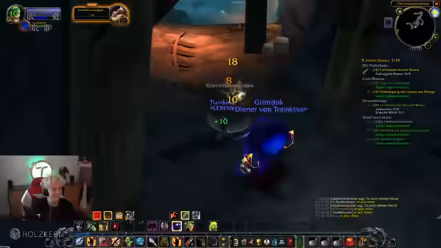 00:23:20Beim ersten Mal WoW-Spielen als Hexenmeister gibt es erhebliche technische Schwierigkeiten mit Addons. Nachdem er Slash2 empfohlene Addons installiert hat (Modern Target Frame, Syndicator, Prat, Get the fuck out, Buggard Natoa), verschwinden plötzlich die Quest-Tracker. Es folgt eine längere Fehlersuche: Er findet heraus, dass Quests nicht automatisch angezeigt werden und installiert schließlich 'What's Training' für Spell-Empfehlungen. Das Interface-Problem löst sich erst, als er manuell das Add-on-Menü über die Escape-Optionen findet und QuestLogger neu konfigurieren muss. Dabei diskutiert er die Nützlichkeit von Addons für Classic WoW und wie notwendig Modifikationen für ein modernes Spielerlebnis sind.