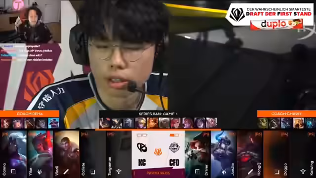 00:38:52Der Streamer äußert seine Präferenz für die Frau mit Fäusten (Vai) gegenüber dem Bären (Volibear) und erklärt, wie Vyols funktioniert. Er lobt den Draft und betont, dass deren Backline beerdigt wird. Er erklärt, dass Kassel im Öl-Game nicht schlecht gegen Kaisa ist und Snowball immer gut ist. Der Streamer analysiert die Drafts beider Teams und kommt zu dem Schluss, dass K-Corp einen Vorteil hat. Er erklärt, dass CFO gezwungen war, Kalista und Draven zu bannen, was normalerweise Red-Side-Banns sind. Der Streamer erklärt, dass das Support-Counterback wieder relevant ist, da es keine Landschaft-Changes mehr gibt. Er kritisiert die Wahl von Auroren und Vi, die gestern von Vladi und Jaike gespielt wurden und eher schlecht waren. Der Streamer lobt den Rakan-Pick und betont, dass K-Cop proaktiv spielen muss. Er erklärt, dass K-Cops Draft quasi die Champions-Spieler einfach so proaktiv, automatisch macht. Er ist mit dem Clean-Feed unzufrieden und vermutet, dass Aurora stark mit Vai ist. Der Streamer lobt die vielen K-Cop-Fans und die Stimmung im Lloyd Park. Er erklärt, dass er die Kamera über die Kamera von den Spielern machen wird, um die Einblendungen im Teamfights nicht zu überdecken. Der Streamer lobt das neue Overlay und betont, dass es viel angenehmer ist als gestern. Er vermisst die Player-Camps, aber ist mit den XP und Runen zufrieden.