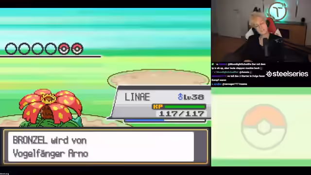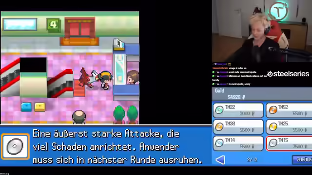 06:06:55Es wird überlegt, wohin man muss. Asilia City wird als Ziel genannt. Eine neue Route wird erreicht. Darm E-Plex wird gefunden. Wirk Reflex wird eingesetzt. Praxik ist Level 40. Es wird überlegt, Grima Wormtong nach vorne zu subben. Lina wird nach vorne geschickt. Es wird überlegt, Schlafpuder für das Pokémon zu haben, welches auf Route 44 gefangen wird. Es werden Rolltreppen gefunden. Es wird überlegt, ob Melotik auch Eis ist. Garados klingt viel cooler als Melotik. Keras hat viermalige Schwäche gegen Elektro. Madikun wird gefangen. Es wird gesagt, dass der Wunsch des Chats Befehl ist. Es wird noch nicht verstanden, was Aprikocos machen im Game. Es wird gesagt, dass man gegen die anderen nicht fighten darf, weil die Random-Level-3000-Blue-Gear dabei haben könnten. Es wird gefragt, wer da hinten ist und warum der Reichweiter da hinten hat.