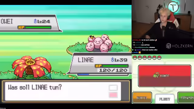 06:41:02Es werden Einkäufe in Ebenholz City getätigt, darunter Hyperbälle und Top-Tränke. Das Team wird angepasst, wobei klimas news und evo die entfernt werden sollen. Magneton und Rizeros werden als mögliche Neuzugänge in Betracht gezogen. Vesprit wird abgelehnt, stattdessen wird ein Feuer-Pokémon gewünscht. Die Level von Katlin werden trainiert, um zu sehen, ob es sich automatisch entwickelt. Kathleen erweist sich als recht nutzlos. In E-Mole City wird nach einem Baum für Kopfnuss gesucht. Auf Route 45 wird Julia gefunden, aber da es sich um eine Doppelung handelt, muss ein neues Pokémon gerollt werden. Ein Funkelstein wird gefunden. Es wird versucht, ein Pokémon zu fangen, und nach mehreren Versuchen gelingt es schließlich, ein Quiekel zu fangen. Der Name des Quiekels wird durch eine Aktion im Discord bestimmt. Ein Choice-Item wird gefunden, dessen Auswirkungen auf Attacken diskutiert werden. Es wird festgestellt, dass sieben Orden gesammelt wurden. Eine neue Route und eine dunkle Höhle werden entdeckt, in der ein Pokémon gefangen werden darf. Ein Level 3 Glumander wird gefunden, aber aufgrund von Pech nicht gefangen werden kann. Es wird beschlossen, den Glumander zu töten. Auf Route 46 wird nach einem Busch für Kraxlein gesucht.