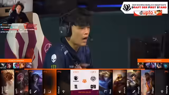 00:00:00Der Stream beginnt mit der Erörterung der Bedeutung des bevorstehenden Spiels zwischen Team Liquid (TL) und CFO, wobei der Gewinner seine Position im Turnier festigen kann. Es wird die Leistung von CFO hervorgehoben, die mit einem 2:0-Sieg gegen Madeline Carmine Corp einen starken Start hingelegt haben. IMPAK wird in einem Interview zu seinen Erfahrungen in Korea und der Wichtigkeit des Spiels gegen CFO befragt, das für TLs Chancen auf den zweiten Platz entscheidend ist. Doggo wird als potenziell entscheidender Faktor für TL hervorgehoben, jedoch mit bisher eher unauffälligen Leistungen im Turnier. Jan wird als konstanter und verlässlicher Spieler für TL gelobt, der in der Lage ist, auf internationalem Niveau mit Lucian zu glänzen. Es wird betont, dass Jan das Zentrum von TLs Spielweise ist und durch seine Leistungen das Team maßgeblich zum Erfolg führt. Die Zuschauergunst liegt mit 51.3% bei TL, was die hohe Loyalität der koreanischen Fans widerspiegelt, obwohl das Spiel zu später Stunde in Nordamerika stattfindet. Abschließend wird die Bedeutung des Spiels TL gegen CFO für den weiteren Verlauf des Turniers betont.