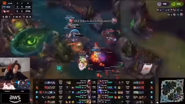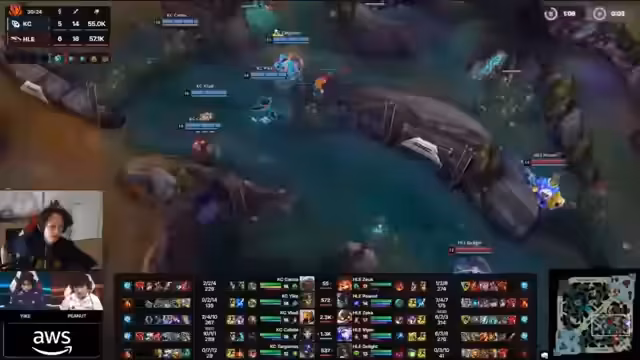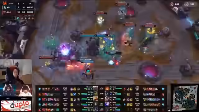 02:38:16KCOP verliert Gold und Hanwha Life sichert sich einen Drake. Zekka von Hanwha Life zeigt überragende Fähigkeiten und dominiert die Kämpfe. KCOP versucht einen riskanten Nashor-Versuch, der jedoch scheitert. Hanwha Life sichert sich den Hextech-Soul und kontrolliert die Karte. Zekka stiehlt eine Talia-Ult und eliminiert Carries. Hanwha Life nutzt die Vorteile durch Zekka und Delight, um Objectives zu sichern und das Spiel zu dominieren. Hanwha Life spielt Mitte und Botlane, um Druck auszuüben und den Drachen zu sichern. KCOP verteidigt sich, verliert aber wichtige Türme und Objectives. Hanwha Life gewinnt das Spiel und zeigt ihre Stärke als bestes Team im Turnier. KCOP wird für ihre verbesserte Leistung im Vergleich zu früheren Spielen gelobt, obwohl sie gegen Hanwha Life verlieren.