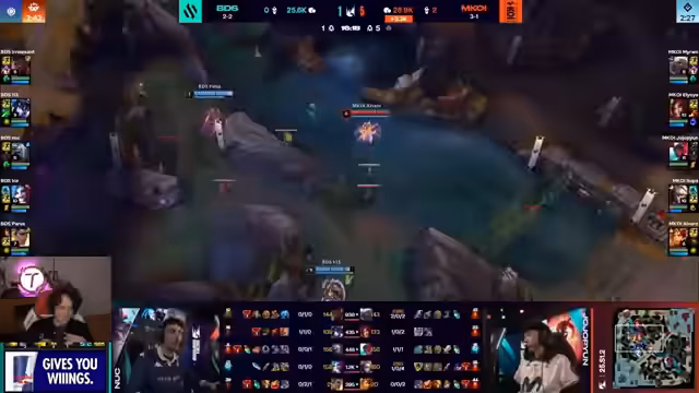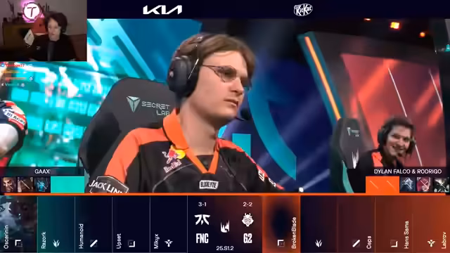 13:25:10Die Reichweite der Teams ist ein entscheidender Faktor, wobei Asil als widerstandsfähiger Sideliner gegen Sylas hervorgehoben wird. Caps wird von Fnatic überrascht und trotz Flash getötet, was Fnatic den ersten Kill beschert. Der Jace von Oskar steht 0-4, aber es wird argumentiert, dass es besser ist, zu sterben und Erfahrung und Gold zu sammeln, als sich komplett zonen zu lassen. Dies wird mit Zeus' Rumble bei den Worlds im letzten Jahr verglichen. In einem Teamfight verfehlt Upside seinen Mystic Shot, aber Fnatic erzielt trotzdem einen Kill. Razork entkommt knapp und tauscht seine Ult gegen die von Siders. Es wird die Bedeutung von Mickys Engage hervorgehoben, der Summer ohne Flash zurücklässt. Die Draft von G2 mit vier Medis wird als problematisch angesehen, da Reichweite in den aktuellen Spielen entscheidend ist.
