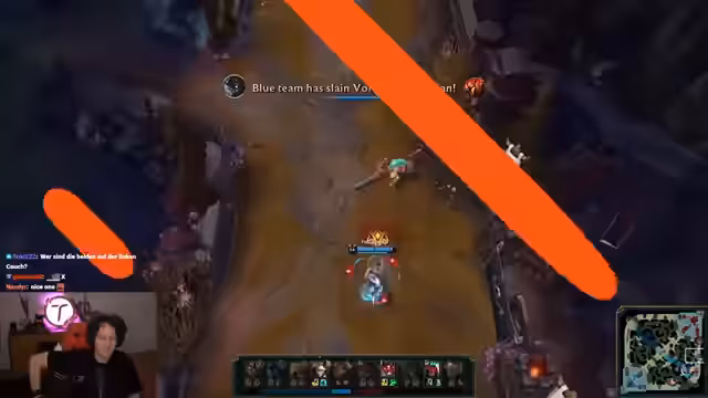 12:39:35Es wird diskutiert, dass ein Clean-Feed für individuelle Werbeeinblendungen ideal wäre, aber aktuell kein deutscher Werbepartner vorhanden ist, anders als im Vorjahr mit LVM. Momentan wird der spanische Beat-Feed genutzt, der gelegentlich Dominus-Werbung zeigt. Im Spielgeschehen wird Nixer gechased und muss aufpassen, während beide Seiten noch zu schwach für ein Braumstacken sind. Die Azir Sundance von Chalk ist nicht immer verfügbar, und Atakan auf der blauen Seite unten ist vorteilhaft, da sie mehr Büsche kontrollieren. Rika hat bereits Feeds of Strength ausgebaut und Schuhe gekauft, was SK einen Vorteil im Inventar, Drachen und Gold verschafft. SK erreicht Power Spikes und würde gerne Herold forcieren, aber nicht mit Atakan. Jena's Joden bereiten einen Wipe vor, und Hillisang verfehlt seine Q, wird gefokust, vergoldet und muss flashen. Lupi verfehlt seinen Cocoon, und der ganze Zoo versammelt sich wieder. Es wird Gameplay hinterfragt, da Hillisang reinjumpt und die Q danebenwirft, was wenig bringt.