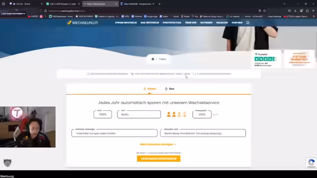 01:53:11Der Streamer wirbt für seinen Sponsor 'Wechselpilot', ein Dienstleister zum Vergleich und Wechsel von Strom- und Gasanbietern. Er demonstriert die Funktionsweise anhand eines persönlichen Beispiels und nennt die mögliche Ersparnis. Er berichtet auch von einem negativen persönlichen Erlebnis mit seinem alten Anbieter Vattenfall, den er beschuldigt, ihn zu 'scammen' und unrechtmäßige Forderungen zu stellen. Der Streamer gibt den Zuschauern einen Code, um eine zusätzliche Cashback-Ersparnis zu erhalten.
