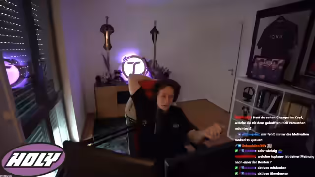 05:19:30Der Streamer wendet sich direkt an seinen Chat, speziell die sogenannten Fitness-Chatter. Er lässt sich zu spontanen Liegestütz-Einlagen anregen und reflektiert kritisch über die korrekte Ausführung, was als Ablenkung vom Frust dient. Der Versuch, durch körperliche Aktivität und Humor die negative Stimmung zu durchbrechen, ist ein Versuch, mit der mentalen Belastung umzugehen. Er wehrt sich gegen die Anwürfe des Chats und signalisiert, dass er eine Pause benötigt und nicht weiter über League diskutieren will.