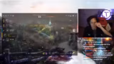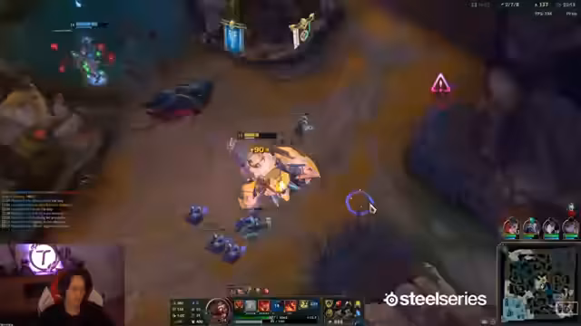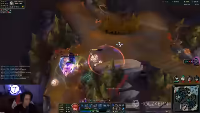 05:33:46Nachdem der Streamer das Triforce-Item komplettiert hat, beschreibt er sich selbst als sehr stark und OP. Gleichzeitig beklagt er jedoch den anhaltenden Verlust der Bot-Lane, die als "doomed" und "Monster-Fucks" betitelt wird. Der Gegner hat dort Vorteile erlangt und setzt den Streamer unter Druck. Der Streamer notiert, dass sein Champion nun stark genug ist, um in die Teamkämpfe einzugreifen, muss aber die massive Fehlleistung an der anderen Seite ausgleichen.