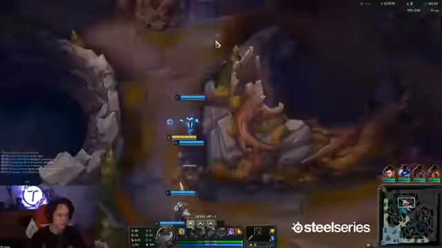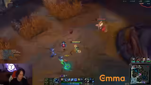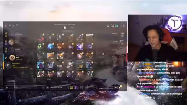 06:13:16Der Streamer konfrontiert sich mit einer extrem frustrierenden Situation, in der er mit seinem Champion (Camille) trotz Triforce-Item deutlich schwächer als der gegnerische Darius ist. Er ringt darum, die richtigen Calls für das Team zu finden. Wenn er nicht gegen Darius fightet, kann dieser frei durch die Map laufen und seine Teamkollegen töten, doch wenn er es tut, ist er in einer Überzahlsituation chancenlos. Dies führt zu einer tiefen Frustration und einem Gefühl der Machtlosigkeit gegen diesen spezifischen Champion im current Meta.