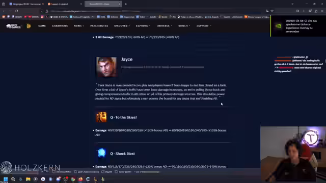 01:34:00Der Streamer widmet sich der neuesten Patch-Notes und analysiert die Änderungen am Champion Jax. Er kommt zu dem Schluss, dass die Nerven an den Basesschaden und die Buffs an die Bonus-AD-Skalierung im Wesentlichen ein Nerf für den Tank-Jax Build sind. Ziel des Patches ist es, den Champion weniger dominant im Pro-Play zu machen und Spieler hin zu anderen Builds wie Eclipse und Lethality zu zwingen. Diese Strategie, Base-Damage zu reduzieren und Scaling zu erhöhen, sieht der Streamer als wiederkehrendes Muster in der Balancing-Politik von Riot Games.