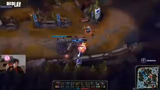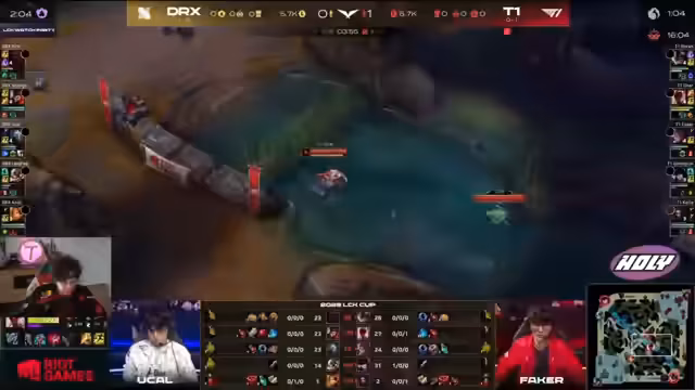 00:25:50Der Fokus liegt auf dem Spielgeschehen, insbesondere auf dem Laneswap, der eher DRX entgegenkommt. Es wird vermutet, dass DRX den Laneswap erwartet hat, um zu verhindern, dass Grass im Early Game von Jace verprügelt wird. Lazyfeel wird auf der oberen Lane alleine gelassen und stirbt nach einem Fehler von Ender, was DRX einen Vorteil verschafft. Doran geht auf Tempo auf der Botlane. Es wird der Fehler von Lazyfield thematisiert, nach einem Full Clear zu sterben, was als ungewöhnlich im Pro-Play angesehen wird. Es wird kurz auf Zeus eingegangen, der zu Hanwha Life gewechselt ist und versucht, der nächste Faker zu werden. Faker kommt mit Galult rein, um zu retten, was zu retten ist, aber Kiria stirbt. Es wird ein Flash von Goomba hervorgehoben, der Lazyfeel festhält und mit Barriere überlebt. Faker flasht gegen die Wand, was zu einem leichten Lächeln seinerseits führt.