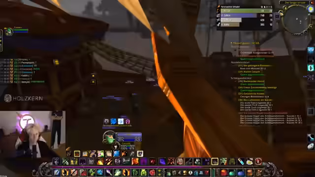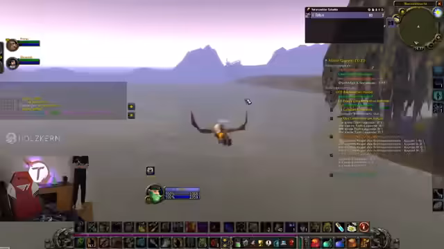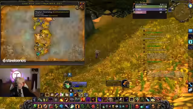 04:37:45Im südlichen Teil von Desolace wird mit einer wichtigen Pre-Quest für eine Dungeon-Zone gerungen, die in Sturmwind angenommen werden muss. Da der Streamer die Quest nicht hat, wird ein Gildenmitglied gebeten, sie zu teilen. Nachdem dies fehlschlägt, wird eine alternative Route gesucht. Es wird entschieden, den Weg nach Sturmwind zu riskieren, um die Quest direkt dort anzunehmen, was als 'geil' und 'schnell' bezeichnet wird.