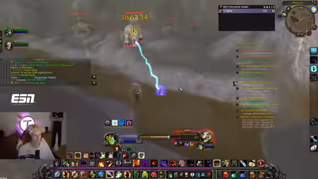06:00:13Während des Streams tauchen bekannte Gesichter aus der Community auf, die mit Fragen oder Hilfsbereichen im Spiel teilnehmen. Ein Spieler sucht nach Hilfe bei der Buff-Organisierung. Ein anderer, Bladeshow, gibt Einblicke in seine professionelle E-Sport-Karriere und vergleicht dessen nonchalantes Verhalten mit dem eigenen Grinding-Alltag. Die Interaktionen zeigen die Verbundenheit und die gegenseitige Unterstützung innerhalb der Gilden-Community.