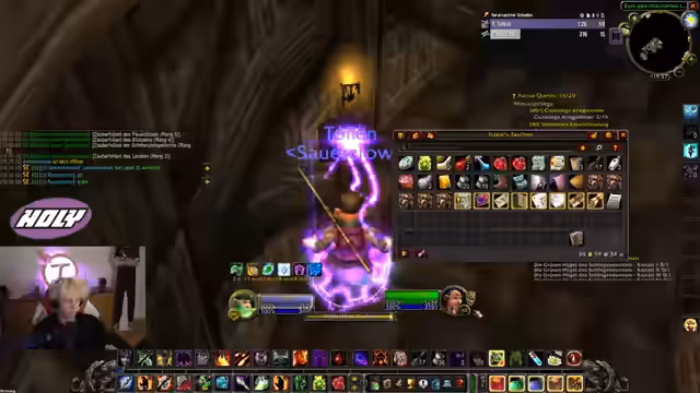 01:08:00Ein wiederkehrendes Thema ist das nervöse Verhalten des Heilers im Team, der unter Stress gerät, wenn der Streamer aggressive Fähigkeiten wie 'Adalas' im Kampf einsetzt, was unbeabsichtigt zu Problemen führen kann. Parallel dazu wird die effiziente Jagd auf Gegner im Umfeld von Arathi-Hochland betrieben, wobei Teammitglieder spezielle Questitems wie 'treue Stücke' sammeln, um wichtige Questen fortzusetzen.