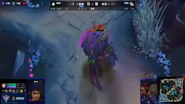 03:27:03Die Arena spannte sich auf, als der Soul-Drachen spawnete. G2 wollte diesen Fight forcieren, um ihr Spiel abzuschließen. Das Team hatte zu diesem Zeitpunkt einen signifikanten Goldvorteil. KC stand unter enormem Druck und musste unbedingt diesen Fight gewinnen, um überhaupt eine Chance zu haben. Die Analysten wichen auf die Champions von G2, insbesondere auf die starke Aurora, und äußerten Bedenken bezüglich der Defensivkraft des KC-Supports. Die Vision auf der Map wurde ebenfalls als wichtiger Faktor für den Ausgang des Fights identifiziert.
