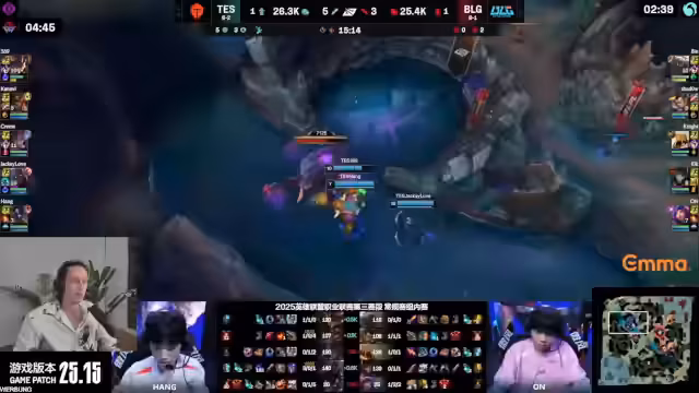 03:44:04BLG sieht sich im späteren Spielverlauf dem wachsenden Druck von Top Esports ausgeliefert. Top Esports kontrolliert die Objektivs nachhaltig und erzwingt Fightings, auf die BLG nur schlecht reagieren kann. Der Versuch, einen Fight am Herald zu initiieren, endet für BLG in einer Katastrophe, da die Positionierung schlecht ist und mehrere Spieler sterben. Top Esports nutzt diese Situation, um den Drachen sicher zu nehmen und den Vorsprung auszubauen.