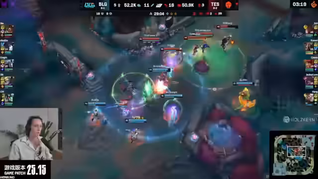 03:03:05Game 1 der Serie zwischen BLG und Top Esports endet mit einem klaren Sieg für Top Esports. Das Team gewinnt durch eine dominantere Makro-Spielweise und eine überlegene Teamfight-Fähigkeit, besonders um wichtige Objectives wie den Drachen. BLG wird dabei deklassiert und kann kein einziges Objective für sich entscheiden. Analystisch wird festgehalten, dass Top Esports die spielerische Stärke im Early Game und im Draft nutzen konnte, während BLG hier Schwächen zeigte und dem Druck des Gegners nicht standhalten konnte.