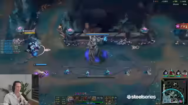 06:06:44Der Streamer beschäftigt sich mit taktischen Entscheidungen und seinem Item-Build. Er überlegt, ob er als Tank weiter mit Juggernaut oder stattdessen mit Titanic Hydra oder Blutrazor mehr Schaden machen soll. Seine Wahl hängt davon ab, wie stark sich seine Teamkollegen im Teamfight verhalten und wie er am besten die Barriere verteidigen kann.
