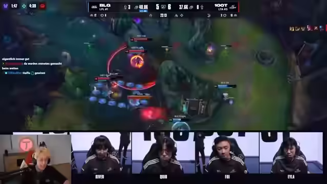 12:06:17Das Spiel zwischen BLG (China) und Hunter Thieves (Nordamerika) begann mit einer detaillierten Draft-Phase, in der BLG als klarer Favorit galt. China setzte auf ein aggressives Early Game mit Champions wie Taliyah und Jarvan, um Lane-Dominanz zu erzwingen. Die blaue Seite, die BLG wählte, bot den Vorteil des First Picks, was die Auswahl starker Champions wie Azir ermöglichte, obwohl Knight sich für Jarvan entschied. Hunter Thieves reagierten mit Ziggs und einem Roaming-Support, um die Botlane zu stabilisieren, da ein direkter Kampf gegen Caitlyn und Elise als aussichtslos galt. Die Strategie von BLG zielte darauf ab, jede Lane zu dominieren und durch frühe Invades und Slow-Pushes Gold- und Erfahrungs-Vorteile zu erzielen. Dies zeigte sich in der frühen Phase, als BLG durch effektives Ausfächern und Lanedominanz die Kontrolle über den Fluss und die Krabben erlangte, was einen erheblichen Vorteil für ihren Jungler darstellte.