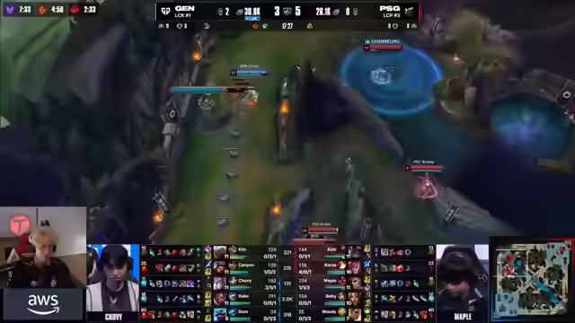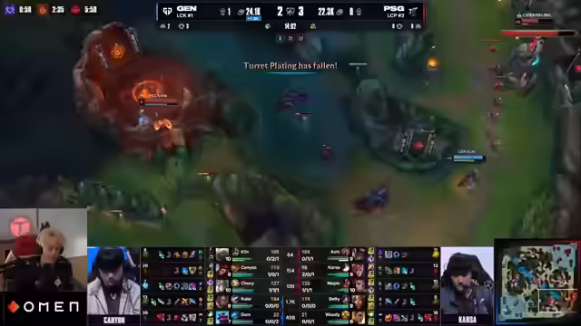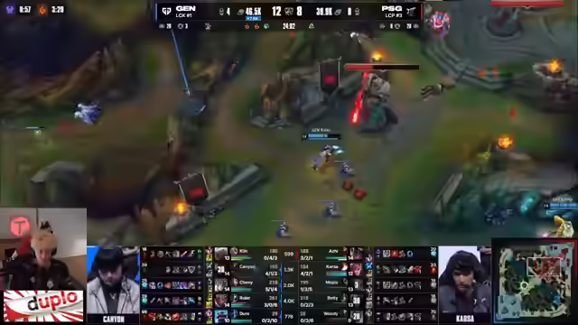 16:31:14Das frühe Spielgeschehen zeigt unerwartete Wendungen. Keane, der normalerweise konstante Toplaner von Gen.G, wird früh von Karsa solo getötet, was ein wichtiges First Blood für PSG Talon bedeutet und die Dynamik des Spiels beeinflusst. Trotz dieses Rückschlags versucht Gen.G, über die Lanes Priorität zu gewinnen und Objectives wie den Drachen zu sichern. Ein Teamfight um die Krabbe eskaliert schnell, wobei Maple mit Swain früh in den Kampf teleportiert, aber aufgrund mangelnder Tankiness und fehlender Ult-Synergie stirbt. Dieser Fehltritt führt zu einem Goldvorteil für Gen.G und unterstreicht die Schwierigkeit, gegen ein so koordiniertes Team wie Gen.G zu bestehen, wenn die eigenen Plays nicht perfekt ausgeführt werden. Trotz der Dominanz von Gen.G im Goldvorteil zeigt PSG Talon Widerstandsfähigkeit und versucht, durch clevere Rotationen und Teamfights im Spiel zu bleiben. Die Diskussion über die Schwachstellen von Gen.G, insbesondere Keanes ungewöhnliche frühe Tode, zeigt, dass selbst die besten Teams nicht unfehlbar sind.