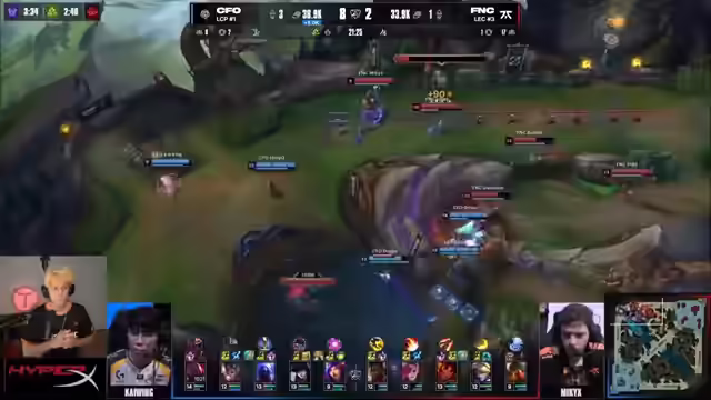 02:08:32Pobi setzt seinen Ult defensiv ein, um den Gegner wegzusperren und den Kampf sicher zu spielen. Junjia wird für seinen Ult gelobt, der ihm hilft, tanky zu werden. Das Team muss die Seele vereiteln, hat aber keinen Zugriff auf Ryze, der Sonjas fertig hat. Caitlyn wird als nächstes Ziel identifiziert. Das taiwanesische Team belagert den Nash und fängt Razork, wodurch Fnatic einen Smite weniger hat. Driver tankt alle Spells und zwingt die Flashes der Carries von Fnatic. Driver wird erneut für sein 'gewaltiges' Spiel gelobt, das zwei Solo-Kills und exzellentes Zoning beinhaltet. Obwohl Oskar einen Kill erzielt, stirbt er dafür, und Fnatic verliert die Seele vom Nash. Driver wird als 'Monster' und 'Schlüsselspieler' bezeichnet, der eine 'Low-Impact-Rolle' in ein 1v9-Spiel verwandelt hat. Die Tatsache, dass Fnatic zwei Flashes an Sion verliert, während Kaiwing seinen Niko-Flash behält, wird als problematisch für den nächsten Teamfight angesehen, da die Carries von Fnatic ohne Flash gegen Nikos Combo antreten müssen.