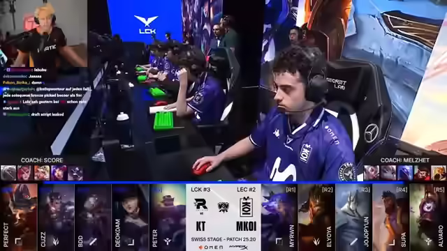 11:12:36Die Draft-Phase beginnt vielversprechend mit der Wahl von Orianna und Jarvan, was als optimal für Elioja angesehen wird. Die Begeisterung steigt, als Orianna offen bleibt und direkt gepickt wird, gefolgt von Jarvan, der als bester gankender Facilitator für Elioja gilt. Die Gegner antworten voraussichtlich mit Xin Zhao oder Wukong im Jungle und K'Sante oder Rumble auf der Toplane. Die Wahl von Galio, entweder für die Midlane gegen Orianna oder als Toplaner gegen Rumble, wird als strategisch klug empfunden. Die bisherige Draft wird als stark bewertet, insbesondere die Kombination von Jarvan und Galio gegen die immobilen Carries Rumble und Orianna. Die Bans von Movistar sind aggressiv und zielen auf starke Support-Champions ab. Die Hoffnung liegt auf einem Lulu-Pick, um die Botlane zu dominieren, besonders gegen einen Braum-Pick des Gegners. Die Draft wird insgesamt als „insane“ und „sehr gute Best-of-One-Draft“ bezeichnet, da sie eine starke Midgame-Komposition mit tanky Champions und einem Hyper-Carry (Jinx) in Kombination mit Lulu bietet. Die Laneswaps des Gegners werden als ineffektiv eingeschätzt, was die eigene Botlane stärkt.