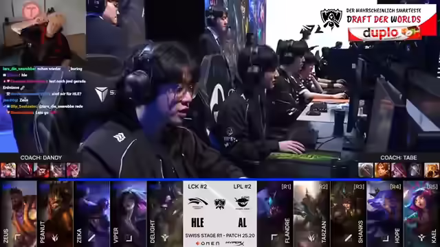 15:26:29Die Diskussion beginnt mit der Bewertung von Galio und Aatrox, wobei Aatrox als ein Champion hervorgehoben wird, den der Spieler Trixix9in liebt, obwohl er im Laning-Phase als schwach gilt. Es wird über Laneswaps nachgedacht, um Aatrox zu umgehen. Die Wahl von Azir und Xin Zhao wird als „geil“ und „gute Draft“ bezeichnet, die guten Peel und decenten Engage bietet, aber potenziell von Orianna und Yuumi outranged werden könnte. Trundle gegen Xin Zhao wird als starker Counterpick der chinesischen Mannschaft identifiziert, was Bedenken aufwirft, insbesondere da Kanavi, der Jungler von Top E-Sports, als bester Spieler gilt. Die Karma-Wahl wird als „terrible“ eingestuft, da sie in einem Laneswap-Szenario voraussichtlich keine Lane gewinnen wird. Rakan wird als „broken“ und als einer der besten Spellbook-Supports für seine Mobilität und Sicherheit gelobt, was die eigene Draft stärkt. Trotzdem wird die Draft von Top E-Sports als nicht schlecht empfunden. Die Hoffnung auf einen Sieg gegen den chinesischen Drittplatzierten ist hoch, solange es 'Solution' gibt.