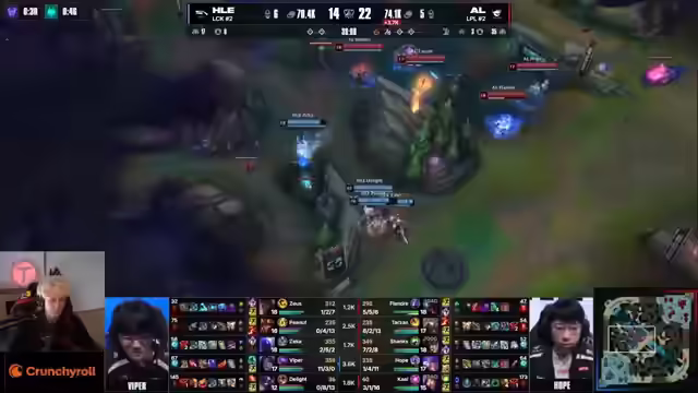 14:51:34Viper erwirbt Blutpop, und Zeka erreicht endlich seine Seraph's Embrace, was ihn offiziell ins Spiel bringt. Ein Engage wird als das Initiieren eines Teamfights mit einer starken ultimativen Fähigkeit erklärt, wobei Jarvans Kataklysmus als Beispiel genannt wird. Im nächsten Kampf wird Zeka von Flandre gechunked, und Zeus stirbt, was Endless Legends einen Vorteil verschafft. Die Chinesen entscheiden sich, den Elder Dragon zu nehmen, während Hanwha Life versucht, ihn zu verteidigen. Kael stiehlt die Seele und rettet das Spiel für die Chinesen, die damit ein unglaubliches Comeback feiern. Trotz Vipers elf Kills stirbt er am Ende, und der Kill geht an Hope, was die Hoffnung von Animals Legends im Spiel nie sterben ließ. Die Chinesen gewinnen das Spiel, was eine enorme Motivation für die gesamte Region darstellt, da sie zuvor oft gegen Korea verloren hatten. Dieses Comeback gegen einen Favoriten ist ein wichtiger Sieg für den chinesischen Frühlingsmeister.