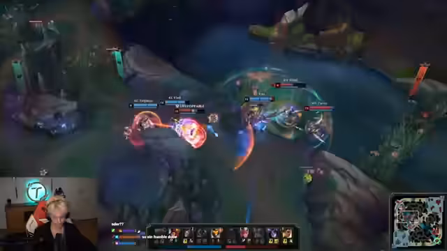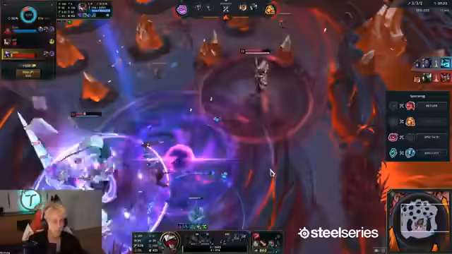 03:14:13BDD, der Trickster-Enthusiast, erzielt mit Zoe einen Doppelkill im Early-Game, was den Grundstein für eine frühe Dominanz legt. Der Streamer kommentiert seinen Itembuild mit Ludens Companion und Shadowflame. Nach drei Jahren ohne Zoe-Pick in einem Profispiel, legt BDD einen 3-0 Start hin und sammelt sechs Darkseid-Stacks. Trotz des Versuchs von Peter, einzugreifen, wird er von Kianas Supreme Display of Talent überwältigt. BDDs Zoe wird als sehr OP beschrieben, besonders mit dem eingesammelten Locket, das ihn fast unsterblich macht. Der Fokus liegt nun auf dem Kauf von Zorks und Ludens, um die OP-Fähigkeiten weiter auszubauen. Währenddessen wird Peters Versuch, das Hextech Gate zu nutzen, vereitelt, und BDD öffnet mitten im Kampf zweimal die Settings, was zu Diskussionen über mögliche Makros und deren potenzielle Einschränkung durch Riot Games führt. Es wird spekuliert, ob BDD seine Mausempfindlichkeit während des Spiels anpasst, um seine Bubbles besser zu treffen, was als 'crazy' bezeichnet wird.