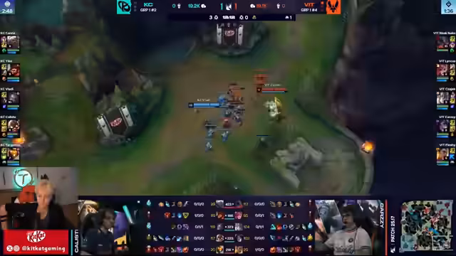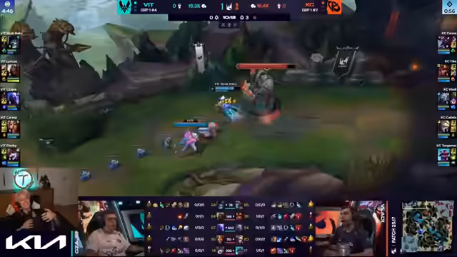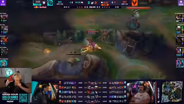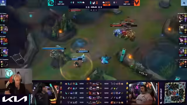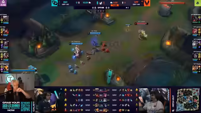 12:25:30Das Spiel Vitality gegen K-Corp ist ein Entscheidungsspiel, bei dem der Verlierer ausscheidet. Der Gewinner hingegen qualifiziert sich für ein Offline-Event in Madrid vor 15.000 bis 20.000 Zuschauern. Der Streamer betont die Bedeutung solcher Events für die Pro-Gamer und die Wertschätzung jedes Teams, das daran teilnimmt. Im Spiel selbst gibt es riskante Aktionen von Flashy, die dem Streamer missfallen, da er dessen Rolle im Team anders interpretiert. Es wird die Frage aufgeworfen, wer Cassante im späteren Spielverlauf aufhalten soll, da dieser viel Schaden einstecken kann. Vitality steht vor der Herausforderung, Kamikors Angriffe zu kontern, während Heltie zu schwach ist, um selbst aktiv zu werden. Das Spiel befindet sich in einer Pattsituation, in der beide Teams unterschiedliche Strategien verfolgen, ohne dass eine Seite die Oberhand gewinnt. Der Streamer spekuliert, dass K-Corp versuchen könnte, den Baron-Nashor zu erzwingen, während Vitality auf Deathcap für Zoe und Infinity Edge für Jhin wartet, um mehr Durchschlagskraft zu entwickeln. Das Team Vitality agiert riskant und begibt sich in gefährliche Situationen, um Raum zu gewinnen, was jedoch nicht immer aufgeht. Ein unnötiger Tod eines Spielers wird als "reudig" und vermeidbar kritisiert.