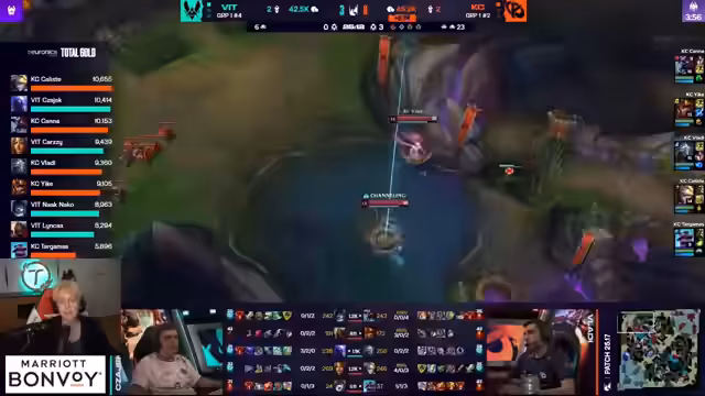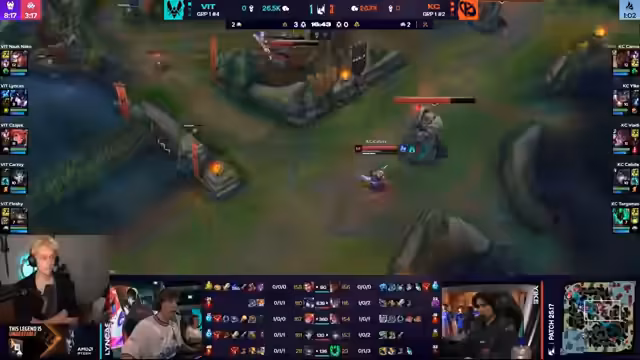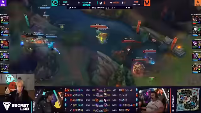 12:38:55K-Corp kontrolliert das Spielgeschehen und baut seinen Vorsprung aus, während Vitality Schwierigkeiten hat, entscheidende Aktionen zu setzen. Lünsers versucht, den Nashor zu stehlen, was ihm auch gelingt, wodurch das Spiel am Leben erhalten wird. K-Corp ist die ganze Zeit überlegen, was vor allem an den Fehlern von Vitality liegt. Trotzdem gelingt es Vitality nicht, das Spiel zu drehen. Cassante teleportiert sich, um das Spiel zu beenden und die Serie zu gewinnen, was durch den Einsatz von Karmicor und die Fähigkeiten von Kana unterstützt wird. Währenddessen ignoriert der Fehlers einfach alle, jumpt jetzt nach vorne, der ist in Dau. Sie sehen, Kaze wird gefressen, um rauszurennen, er hat noch Flash & Cleanse. Trotzdem da ist der Flammenwerfer und er hat beinahe Kaze erfasst. Darf gerade so am Leben bleiben, Objective Bounty, Jace ist erfolgt. Jace kauft noch ein Item, während K-Corp den Nashor erzwingt. Vitality kann den Nashor nicht verhindern, was ihre Lage weiter verschärft. Kamikor kann mit den gegebenen Umständen gut arbeiten und steuert sein Team zum Sieg.