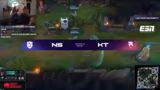 04:58:02Der Streamer kommentiert den abschließenden Fight als geil und sieht den Sieg vonKT als erreicht an. Er lobt die Voids von Sponge und die Kombo. Obwohl KT den Kampf eigentlich nicht gewinnen durfte, führt ein guter Zug von Perfect (KT) zum Sieg. KT ist damit unangefochtener LCK-Anführer nach Woche 2 und hat als einziges Team alle Legend-Teams aus der Vorjahrssaison besiegt.