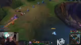 07:25:52Das Gold ist ausgeglichen, aber ein entscheidender Nashor-Kampf droht. Ein aggressiver und nicht koordinierter Vorstoß kostet das Team wichtige Ressourcen und den Nashor, weil sie sich falsch positioniert und koordiniert haben. LeBlanc nutzt einen Teleport für einen Kill, was den Gegner in eine stärkere Position bringt und den Druck erhöht.