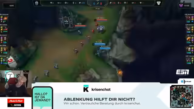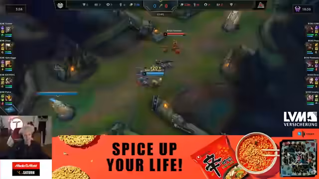 09:40:03Nachdem 'Paul' erfolgreich den 'Baron Nashor' für sein Team geholt hat, sieht der Streamer eine gute Chance für einen Sieg. Er kommentiert das Teamfight und die anschließende Belagerung des gegnerischen Nexus. Das Spiel endet jedoch mit einem 'GG' für das gegnerische Team 'Kaufmann', das den ersten Win in der Serie holt.