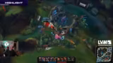 03:54:34Das Spiel nach dem verlorenen Baron Nashor wird als chaotisch beschrieben. Die Kämpfe finden in unmittelbarer Nähe der Türme statt und sind sehr hektisch. Es wird eine Situation gezeigt, in der Jarvan IV Nongshim Red mehrfach angreift, aber aufgrund von Vision und guter Positionierung des Gegners wird der Angriff abgewehrt und Jarvan schließlich selbst getötet. Der Streamer bewertet das Spiel als sehr unordentlich und vergleicht es mit Völkerball, anstatt eines strategisch sauberen LCK-Spiels.