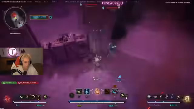 07:32:28Der Streamer beobachtet gegnerische Teambewegungen und diskutiert mit seinem Team über Taktiken. Er nutzt seine Fähigkeiten, um das gegnerische Team abzulenken und Vorteile zu schaffen. Dabei koordiniert er sich mit seinen Teammitgliedern, etwa bei der Platzierung von Barrieren und der gemeinsamen Jagd auf Gegner. Er gibt auch Tipps zur Vermeidung von Third-Party-Angriffen und zur richtigen Positionierung im Kampf.