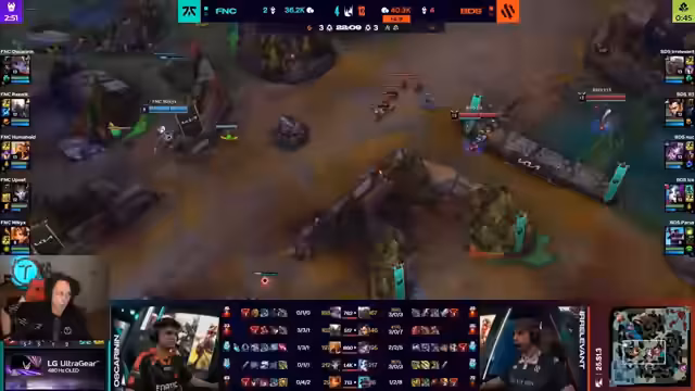11:53:11Upset von Fnatic missplayed, was zu einem Skarner-Ult führte. Kassante sollte Corki nicht ulten, da Aurora's prozentualer Schaden ausreichte. BDS sicherte sich den Drachen und skalierte gut, besonders Ezio und Aurora. BDS zeigte eine deutliche Verbesserung gegenüber dem Vortag und fixte Midgame-Probleme. Nugler von BDS war mit Bluepod ausgestattet, was entscheidend war. Rue von Fnatic cancelte die Base, konnte aber Korki nicht töten. Abseits von Fnatic setzte auf QSS gegen CC von Impale, Skarner, Garen und Nautilus. Felix von BDS spielte riskant, während Relevant von Fnatic Mortal Reminder baute. Garen's Q und E harmonierten gut mit Mortal Reminder, was gefährlich blieb. BDS versuchte, die Basis einzunehmen, scheiterte aber erneut. Humanoid von Fnatic hielt die Carries ab, um den gegnerischen Nash zu disengagen. Fnatic hielt das Spiel und spielte ruhig bis zur Seele.