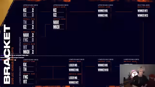 03:32:31Nach dem klaren 2-0-Sieg von Kamiko über Giant X gibt es einen Ausblick auf die anstehenden Partien. Am Freitag trifft Kamiko im Upper Bracket der DC auf G2 in einem Best-of-3, wofür der Streamer bereits großes Interesse signalisiert. Gleichzeitig werden die Leistungen der beiden analysiert. Kamiko beeindruckte durch die starke Leistung von Kalista und Busio in Game 2, während Giant X nach einer starken regulären Saison in den Playoffs etwas hinter Erwartungen zurückblieb und unter anderem an der Teamfighting-Stärke der asiatischen Teams gemessen werden muss.