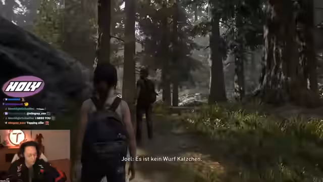 08:47:50Im Spiel von The Last of Us 2 trifft der Streamer mit der Figur Tommy zusammen und hört die schreckliche Nachricht, dass Joel und Tommy Frau und Tochter verloren haben. Die Enthüllung führt zu einer emotionalen Wendung in der Geschichte. Der Streamer erkundet daraufhin einen Ort namens Capitol Hill, um die Geschehnisse besser zu verstehen und neue Informationen zu sammeln, die den Fortgang der Story beeinflussen könnten. Die Handlung konzentriert sich hier auf die Enthüllung von tragischen Verlusten und der Suche nach Antworten.