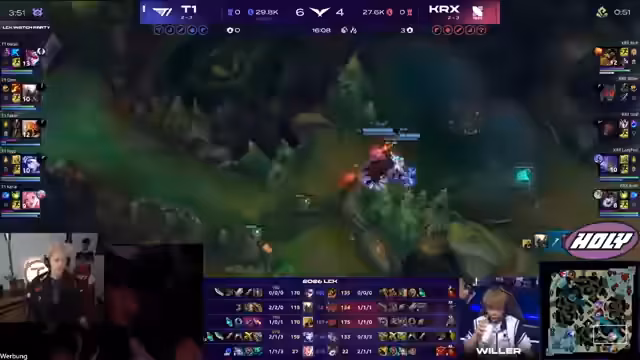 03:56:19Der Stream beginnt mit einer intensiven Analyse des frühen Spiels in der Partie. Der Kommentator erwähnt einen Entscheidungspunkt im Nashor-Fight, der den Spielverlauf maßgeblich beeinflusst hat. Er erklärt, dass T1 im Early Game stark agiert hat, keinen einzigen Auto-Turret verloren und keinen Drake bekommen hat. Gleichzeitig kritisiert er den versehentlichen Verlust des Nashors als wendepunktartiges Ereignis, das das Spiel für KRX deutlich erleichtert hat. Der Fokus liegt auf der Leistung von Kiwo und D-Rex sowie den Item-Builds von Pace, der Infinity und Rapid sowie Hex-Optics gewählt hat.