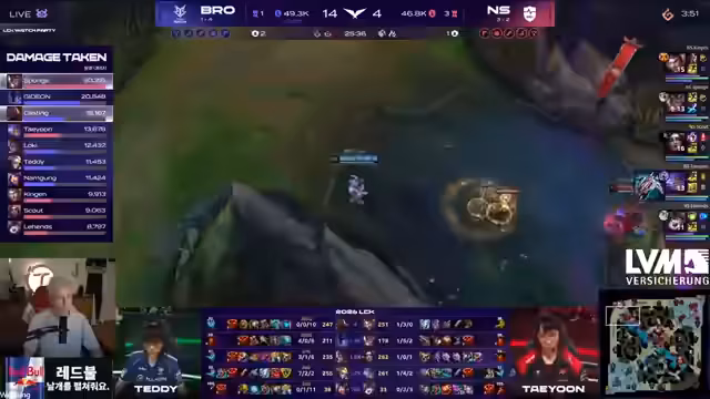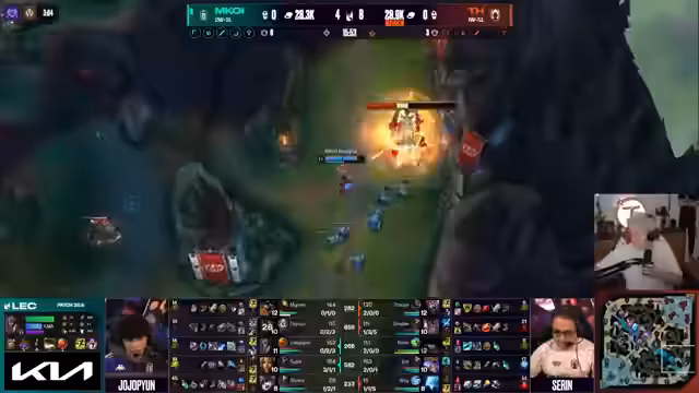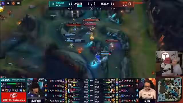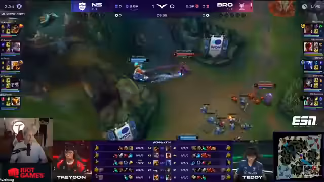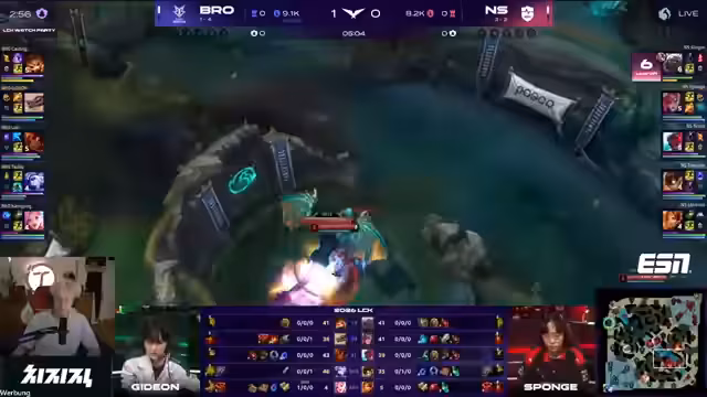 00:00:53Die ersten Minuten des Spiels zeigen, wie die Bros aggressiv in die Bot-Lane eingreifen und First Blood holen. Die Teamkämpfe werden als entscheidend für den Spielverlauf betrachtet, da die Bros mit ihrer Macro-Spielweise und gezielten Dives die Oberhand gewinnen. Casting zeigt sich dabei als MVP, da er mehrere Todesopfer für seinen Team bringt. Nongshim versucht, der Druck durch starke Sidelane-Picks wie Sion zu begegnen, die jedoch nicht ausreichen, um die Dominanz der Bros aufzuhalten.