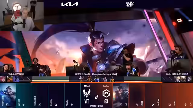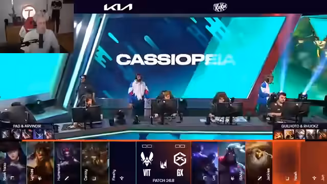 08:37:25Lünas zeigt mit seinem Aatrox eine außergewöhnliche Leistung und führt Vitality zum Sieg. Sein Champion wird als 'dämonenhaft mächtig' beschrieben, und er baut seine Statistik auf beeindruckende 8 zu 0 Kills aus. Der Streamer hebt hervor, dass dies eine tolle Serie von Vitality war, besonders im Spitzenduell gegen ein starkes Team. Lünas' Einfluss auf das Spiel wird als entscheidend angesehen, wobei er wenig Fehler macht und viel Gold für sein Team sichert.