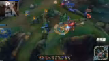 07:20:15Kasi zeigt eine außergewöhnliche Performance, obwohl sie ohne Barriere und Clan Story spielt. Elise kehrt mit Protobelt zurück und startet einen Angriff auf die Fresse der Gegner. Die Quinn-Lane stellt sich als eher nutzlos heraus, besonders da Renekton ohne Dorans Shield startet und sehr glücklich damit wirkt. Die Fähigkeiten der Champions Quinn (zu einem Vogel), Renekton (zu einem Krokodil) und Elise (zu einer Spinne) sorgen für eine interessante Dynamik.