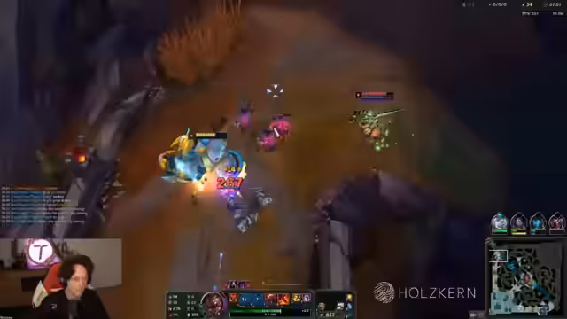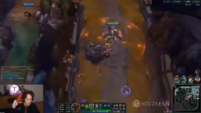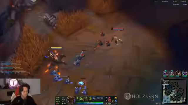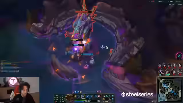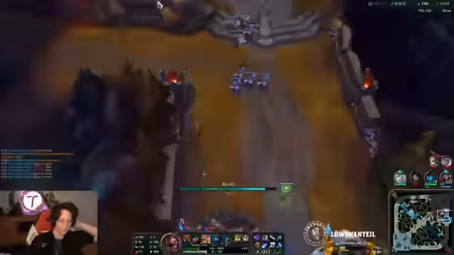 02:21:12Das aktuelle ranked Spiel beginnt. Der Streamer, der als Jungle mit Urgot auf der bot-lane ist, erwähnt, dass die Toplane aktuell sehr stark ist, auch wenn er dies nicht als Ragebait verstanden haben möchte. In seinen bisherigen Spielen stand er oft besser da, wurde jedoch vom eigenen Team nach einem guten Start an den Rand gedrängt. Er erwähnt auch die aktuellen Winrates in Solo-Tiers, die im Vergleich zur vorherigen Season nicht signifikant höher sind, und kritisiert den First-Blood-Sound, der als sehr tiltend empfunden wird. Der Jungle-Urgot wird als sehr stark beschrieben, der den Teamfights und dem Map-Controll dient.