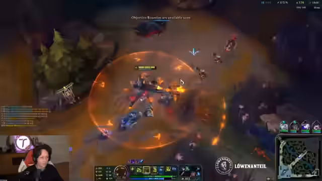 03:23:29Es wird überlegt, ob Boots ausgebaut werden sollen, dies wird jedoch als nicht lohnenswert erachtet, da der Fokus darauf liegt, Siegs früher zu kaufen, um das Team zu unterstützen. Ein missglückter Versuch, einen Gegner auszuschalten, wird analysiert, wobei der Fehler bei der eigenen Positionierung gesehen wird. Es folgt ein erfolgreicher Zug zur Drake-Base, wobei diskutiert wird, ob ein Boots-Upgrade in dieser Situation vorteilhafter gewesen wäre. Ein Plan wird geschmiedet, wie man einen anstehenden Teamfight um die Seele angehen soll, wobei Oriana als primäres Ziel identifiziert wird. Ein kostenloser Seelen-Gewinn wird bejubelt und ein aggressiver Spielzug angekündigt. Es wird die Fähigkeit hervorgehoben, gegnerische Ults zu ziehen, was als großer Vorteil angesehen wird. Der Fokus liegt darauf, den Gegner zu einem Turm in der Mitte zu zwingen und Weaver Boots für zusätzlichen Schutz zu kaufen.