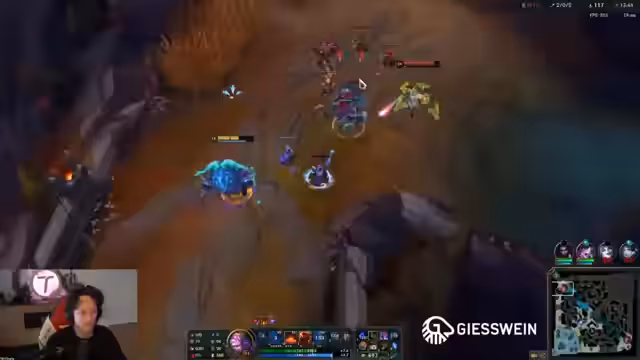 01:35:53In einem laufenden Spiel als Urgot diskutiert der Streamer seine Item-Build-Entscheidungen und seine Rolle im Team. Er plant, schnell ein wichtiges Item zu bauen, um seine Power-Spike zu erreichen und Objektive wie den Herald zu sichern. Er beschreibt einen geplanten Play, bei dem er die gegnerische Aufmerksamkeit auf sich zieht, während sein Team andere Ziele anvisiert, und betont die Wichtigkeit von Goodward-Vision für solche Aktionen.