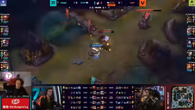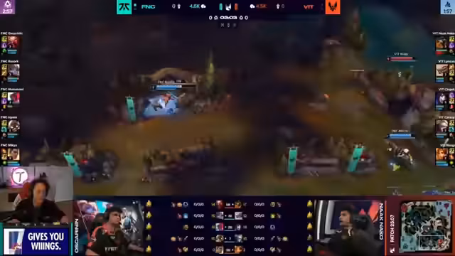 06:06:30Die Analyse des Spiels zeigt, dass Ezreal als zu schwach angesehen wird, während der Corki als übermächtig gilt. Humoraut dominiert die Top-Lane und tötet Schalke, trotz dessen Einsatz von Malignance und Ult. Fnatic spielt ein sauberes Spiel mit gutem Druck, wobei Yons Sightlein positiv hervorgehoben wird. Es wird diskutiert, ob Yone Defensive Boots benötigt, die zwar stark sind, aber nicht unbedingt ideal für Yone und Yasuo. Ein Flash von Niski bewahrt sein Leben, während Fnatic die Top-Lane durchdrückt. Micky engaged zu früh, was zu seinem Tod führt, aber Kazi entkommt. Yone solo-killt Kazi, und Nafiri arbeitet hart, aber ohne Erfolg. Trotzdem ist der Wert von Luzer im Kampf extrem mächtig, und Poppy spielt außergewöhnlich gut gegen die Dashes. Razog überlebt den gesamten Teamfight dank Thunder-Sky-Heilungen. Fnatic gewinnt einen wichtigen Teamfight im Mid-Game, wobei Sander durch sein Item glücklich ist. Thunder-Sky-Heilungen retten den Tag, und Fnatic gewinnt das Spiel durch ihre Topside-Dominanz, insbesondere durch Poppy, Yone und Gragas. Vitality hingegen hat Schwierigkeiten, Nash zu kontrollieren, und Oskar wird trotz seiner Tankyness von Zika-Sarm kurzzeitig gelähmt. Humanoid kann Nash erzwingen, während Jumonaut Czajek solo-killt. Fnatic gewinnt das zweite Spiel, nachdem das erste holprig verlief, wobei der Poppy-Pick als entscheidend angesehen wird.
