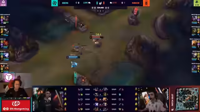 06:49:54BDS sichert sich die Goobies, während Ivan seine Lady beschützt. Es wird erwartet, dass beide Seiten erneut um den Drachen kämpfen werden. Mobbystar hat eine kuriose, aber interessante Draft gewählt, die keinen direkten Engage oder Face-Check-Champions beinhaltet, was aber gegen BDS' Chavez gut funktioniert. Scanner gegen Alvan ist ungünstig, da Alvan immer ein Counter war. Azir ist zwar nicht ideal gegen Talia, aber sein Champion-Potenzial ist nicht zu unterschätzen. Es wird spekuliert, ob Varus Stridebreaker bauen wird. Das Spiel wirkt lustig, aber es ist unklar, wie BDS mithalten will. Sie haben den Drachen zwar bekommen, aber mit einem hohen Preis bezahlt. Mobbystar verfolgt eine Strategie, bei der Ash scoutet und versucht, Gegner zu catchen, während Talia sie wegschiebt, was gegen Mobbystar jedoch nicht effektiv ist.